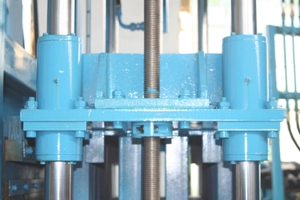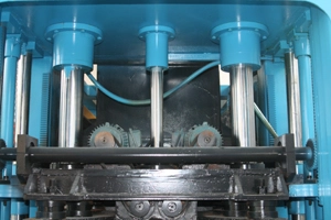 Il y a des cylindres d'arbre sur le moule supérieur. Celui du milieu assure l'accélération du levage et les deux autres de part et d'autre assurent la pression du moule supérieur.