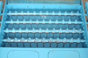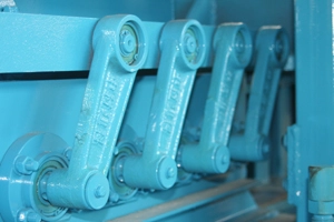 Un mécanisme à manivelle est utilisé. Il transmet le mouvement circulaire de la manivelle dans le mouvement alternatif droit de la structure mobile, ce qui garantit un déplacement fluide des palettes et une transmission stable des produits.